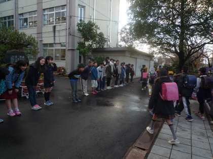 朝,校門のところで児童会の子ども達や代表委員の子どもたちが元気にあいさつをして,登校してくる子ども達を迎えています。