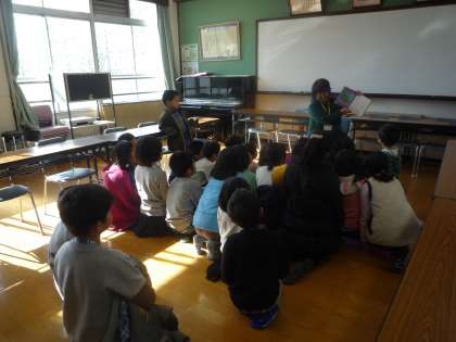 土曜学習では,子ども達が楽しみにしている読み聞かせがあります。今回も楽しい本を読んでもらいました。