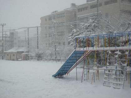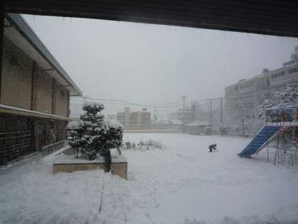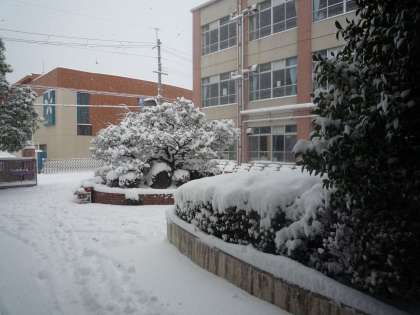 前日から,明日の天気は大丈夫かなと危ぶまれていましたが,朝から大雪。学校も雪化粧です。