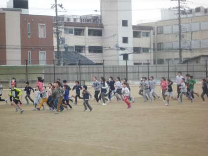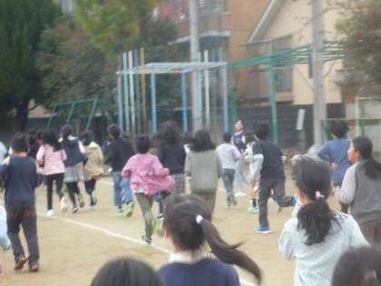 今日の業間マラソンです。昨日は運動場の状況が悪かったためにできませんでした。その分も今日は全力で走っています。