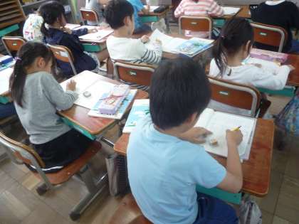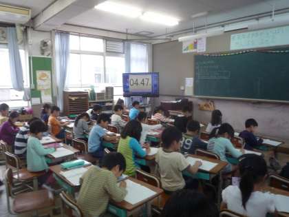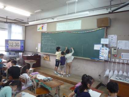 今日の学習のめあてです。子ども達は自分の考えをノートに書きます。