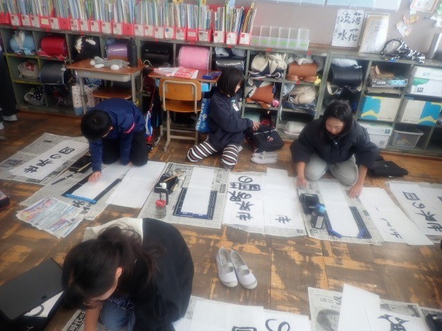 いつもとは違う半紙なので、難しかったですが、いい字が書けました。