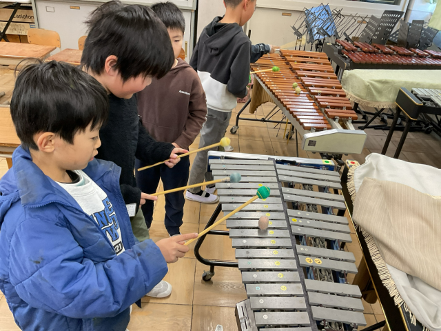 理科の学習で、音を鳴らしたら、楽器の様子がどのようになっているのか観察しました。