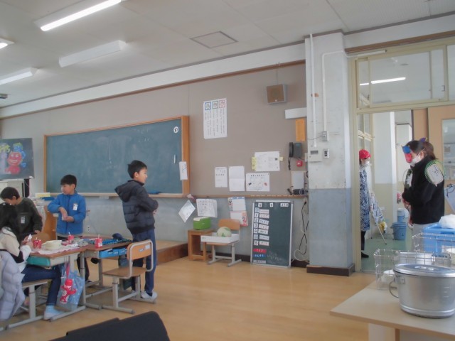 給食では、教室に鬼が来ました!優しい鬼で、「給食をいっぱい食べてね」と言って帰っていきました。