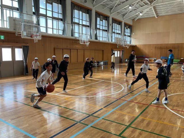 教えていただいたコーチの方と試合をしたり、一緒に給食を食べたりと、めったにない経験にテンションが上がっていた子どもたち。