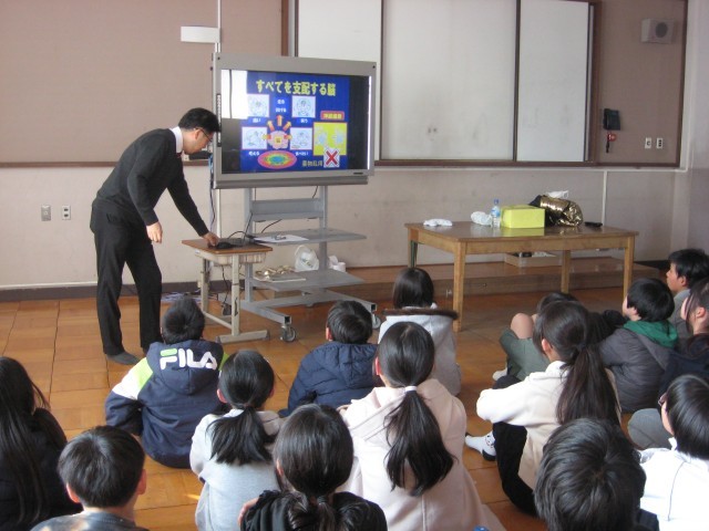 6年生では、学校薬剤師の田中先生から薬物乱用防止についてのお話をしていただきました。