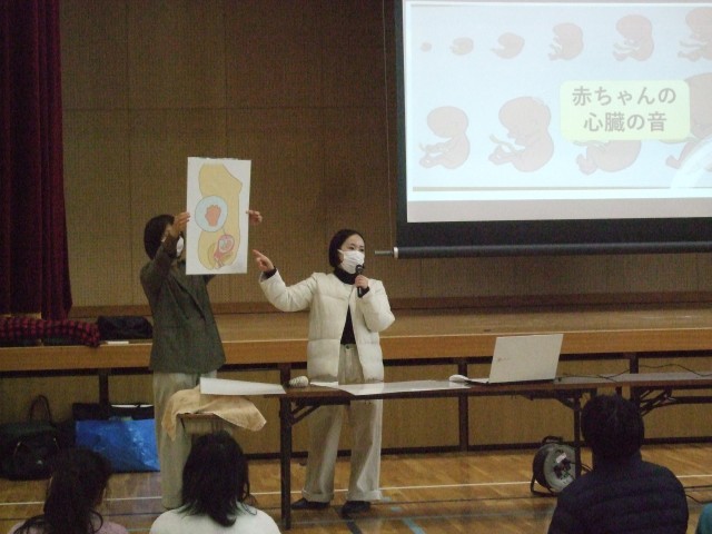 民医連中央病院から助産師さんに来ていただき、いのちのはじまりについてお話を聞きました。