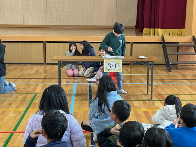 2月5日(木)中間休みに豆つかみ大会がありました。