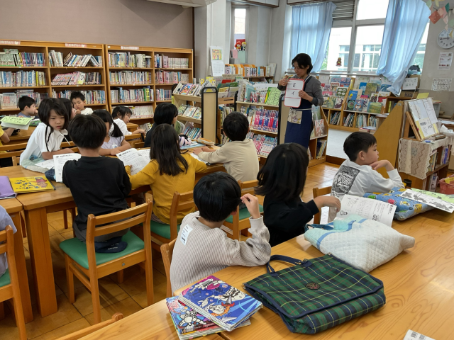 司書の先生に本の分類について教えていただいた後、読み聞かせをしていただきました。