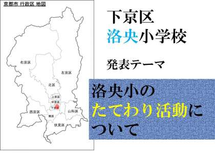 8月22日に総合教育センターで行われました京(みやこ)キッズ会議に洛央小学校の6年生2名が参加してくれました。本校のたてわり活動について、紹介し、質問にも答えることができました。6年生らしいすばらしい発表でした。