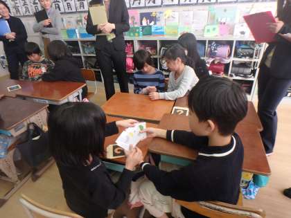 問題を出す子も,答える子も英語を使ってのクイズをとても楽しんでいました。
