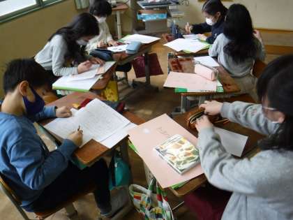 地域のお店・団体の方々にご協力いただき,進めてきた「伝統のまち洛央」です。ハートフル洛央に向けて掲示が完成しました。一人ひとりテーマを決めて書きました。原稿を書いて,推敲,清書と頑張りました。