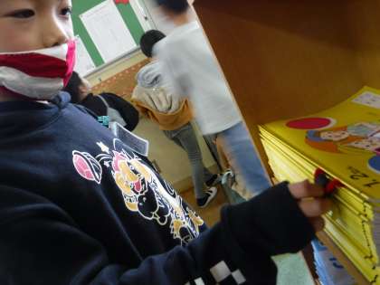 たなの隙間,紙と紙の間,小さなくぼみや穴にまですきまちゃんは入ることができます。すきまちゃんと話したり,すきまちゃん同士を遊ばせたりしながら,子ども達は次々と面白い隙間を見つけていました。
