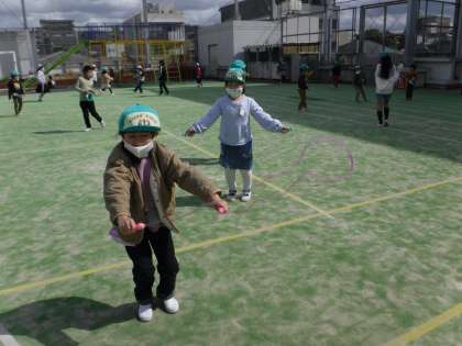 1年生は,運動場でおにごっこやなわとびをして元気に遊び,汗びっしょりになりました。