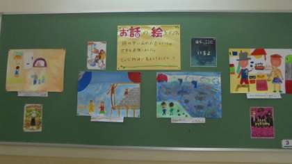 お話の絵を描きました。各学級ごとに物語は違うのですが,物語の場面をそれぞれ思い浮かべて,3年生らしい絵が描かれています。