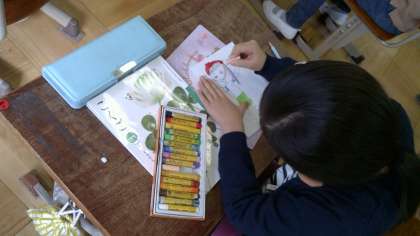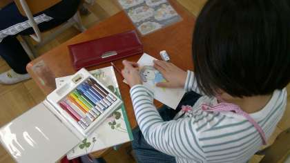 国語科では,「くじらぐも」の学習を行っています。お話の中の子ども達のように,「私たちもくじらぐもにのってみよう!」と,くじらぐもにのった自分を想像して,絵を描きました。「服の色はどうしようかな」「こんなポーズで,くじらぐものここにのる!」など,想像を膨らませながら活動する子ども達の姿が見られました。くじらぐもからどんな景色が見えるのか…考えるとワクワクしますね。