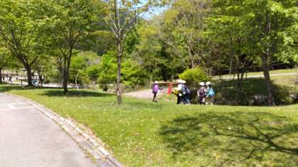 入所式後にオリエンテーリングをしました。構内を歩くと、早くもいろんな生き物を見つけたようです。