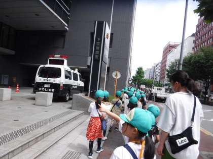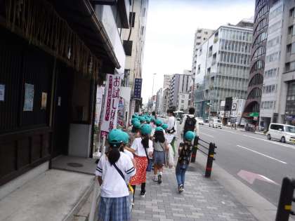 本日、前回雨天により延期となった第2回校区探検(西側)に行きました。蒸し暑い中での探検となりましたが、交通ルールに気を付けて、地域にある建物やお店をたくさん見つけることができました。