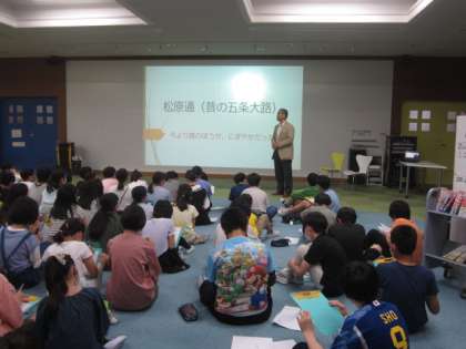この日は地域の方を招いて、松原通の昔の様子についてお話を聞きました。昔の松原通は今よりもっとにぎやかだったこと、この辺りには今もたくさんの当時を語り継ぐ場所があることを教えていただきました。