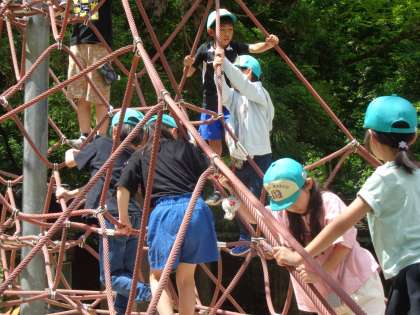 ザイルクライミングでは、みんな身体全体を使って器用に登ることができました。そして待望のお弁当をグループで食べました。「おいしいおべんとうありがとうございます。」