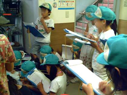 18日(金),社会科の学習でスーパーマーケットに行ってきました。行ったところは,フレスコ寺町店です。着いてすぐに店長さんに挨拶をして,店内を30分間見学しました。あちこちの棚を見て回ってはメモをとる子。魚のパッケージに目を止め「このエビ,インドネシアから来てる」「この魚は,長崎からや〜」「魚によって,来てるところが違うんやね〜」と感心している子。店員さんに話を聞いている子。お客さんにインタビューしている子・・・など,とても活発に活動していました。その後,2階に上って倉庫を見せていただき,そこでいろいろ質問に答えていただきました。仕事の中で工夫していること,気をつけていること,仕事をしていて嬉しかったこと,お勧めの品は?などたくさん質問をしました。店長さんは,子どもたちの純粋で素朴な質問に,とても丁寧に答えてくださいました。それを聞いて、子どもたちも驚いたり,感心したりの2時間でした。