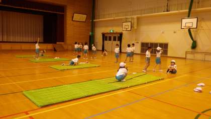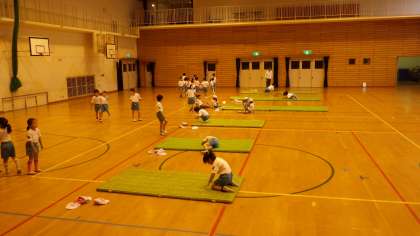 子どもたちは,前転・後転の技を一生懸命学習していました。