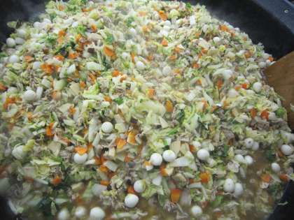 豚肉・いか・にんじん・白菜・しょうが・うずら卵・たけのこ・しいたけが入りました。