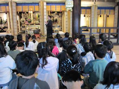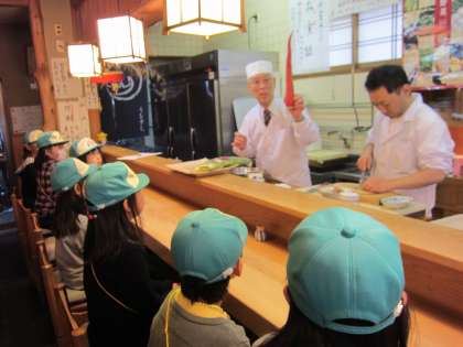 3年生は総合的な学習で「京都の大事なたから物」について調べています。地域にある京料理のお店や茶室,お寺などにグループにわかれてインタビューをしに行きました。これまで大切にしてきたことや工夫していることを聞いて子どもたちはうなずいていました。