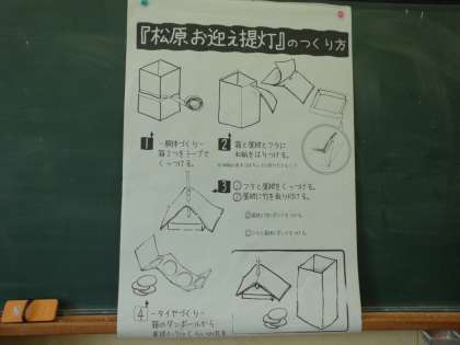 6月27日(木),松原プロジェクトの方がいらして、『松原お迎え提灯』の作り方を教えてくださいました。鉾の形でかわいく仕上がりました。各々シンボルを工夫して,個性を活かした作品になりました。