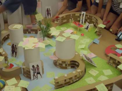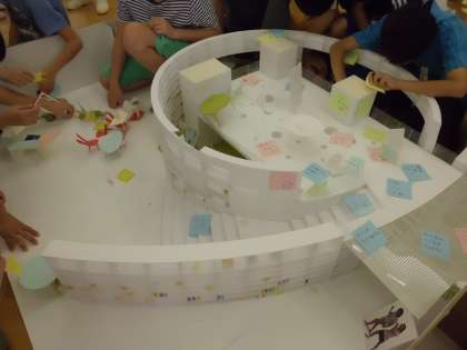 洛央小学校のブックワールドも,みんなが集まり,共に学び,表現することができるような,活動を楽しむ場所になるように,6年生がアイデアを出し合い,自分たちの夢を実現するブックワールドをデザインしています。