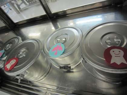 今日は6月に入ったので、食缶のふたにてるてるぼうずと傘の飾りをつけました。
