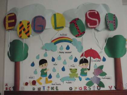 階段から子どもたちの“A, B, C, D・・・”の歌声が聞こえてきます。