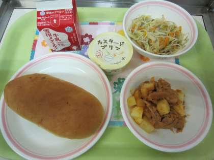 ☆6月10日の献立☆ ・チーズコッペパン・牛乳・豚肉のケチャップ煮・たっぷり野菜のビーフン・プリン