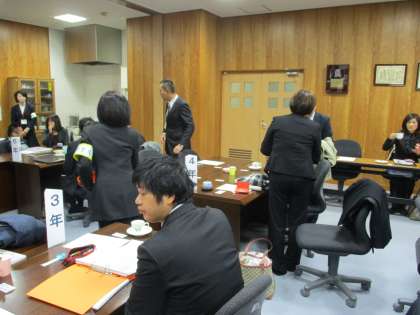 公開授業や実践発表に対する指導助言者の先生方もたくさん来てくださいました。オリエンテーションが始まるまでの間、会議室でお待ちいただきました。