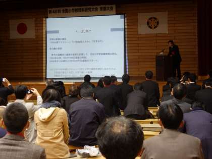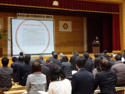 全体会では京都女子大学の宮野純次教授から「理科における問題解決と学びあい」という演題で指導講話をいただきました。