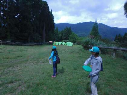 その後,フライングディスクゴルフを楽しみました。この後昼食を食べ,4日間の活動のふりかえりをし,退所式を迎える予定です。