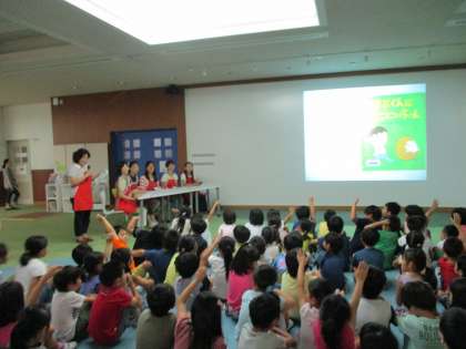 9月のお話バスケットのみなさんによる読み聞かせがありました。ブックワールドではたくさんの子どもたちが、お母さん方のお話を楽しく聞かせていただきました。お話バスケットの皆さんは、「子どもたちが読書をもっとすきになってくれたらいいな。」と、はりきってくださっています。メンバーも増えてとてもチームワークがとれていて、素敵な読み聞かせでした。