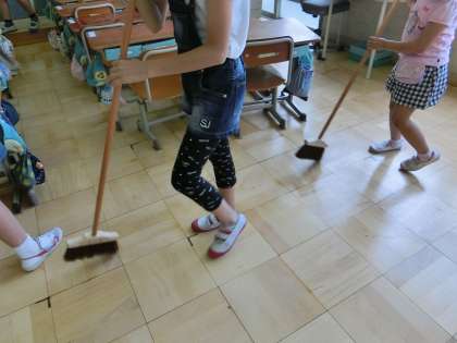 たてわり掃除が始まりました。子どもたちはグループで協力しながら掃除を頑張っています。