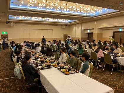 美味しそうなお膳が並んでいます。みんなで食事のマナーを確認して食べ始めました。「美味しい!」「いっぱい食べるぞ!」もりもり食が進んでいます。明日に向けてしっかり食べてほしいと思っています。