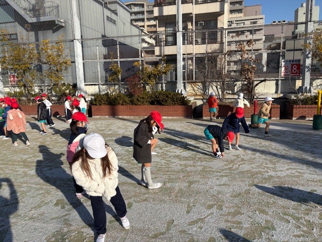 今日は朝から運動場が真っ白で、子どもたちは大喜び!!
