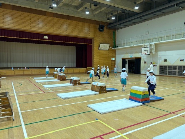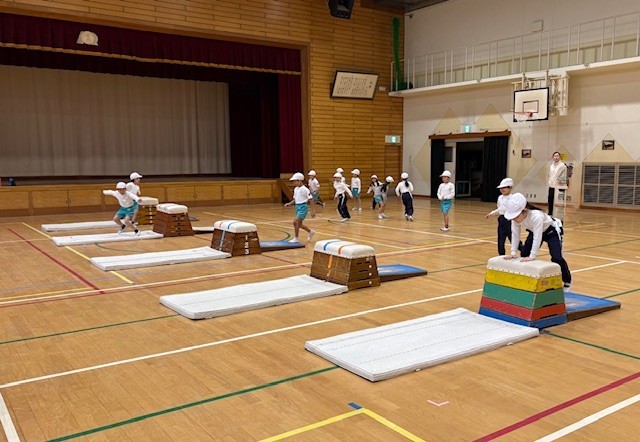体育では、とびばこあそびがはじまりました。