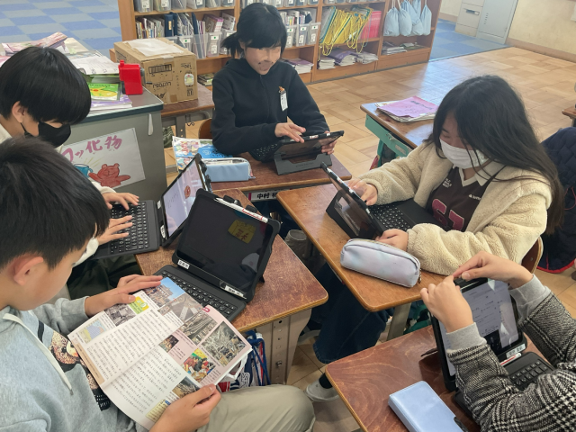 社会科と音楽科の合科学習を行っています。今回の合科の内容は、社会科の「日本とつながりの深い国々」と音楽科の「世界の音楽に親しもう」です。今週は、6か国の中から選んだ国の伝統や自然、革新について調べ、魅力を伝えるためのムービーづくりに取り組んでいます。どんな発表内容とムービーが出来上がるか楽しみです。