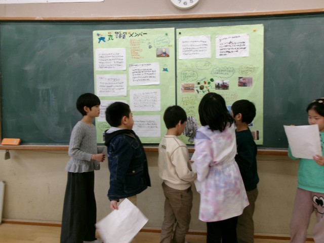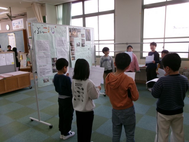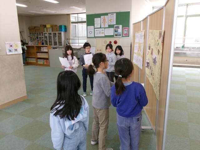 ハートフル洛央の練習をしています。生活科の学習「もっともっと町たんけん」の発表会です。原稿を見ずに、聞いてくれる人にわかりやすく発表したいと思います。みんなでがんばります。