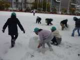 先日よりも今日はたくさん雪が降り,運動場も前回より雪が積もりました。 前よりも大...