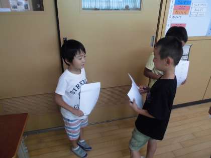 国語で「すきなこと、なあに」という伝える活動を行いました。自分の好きなことをカードに書いて、好きなこととそのわけを友達に紹介しました。お友達と交流をした後は、カードの裏にサインをし合います。子ども達はたくさん集めながら、とても意欲的に活動を行っていました。