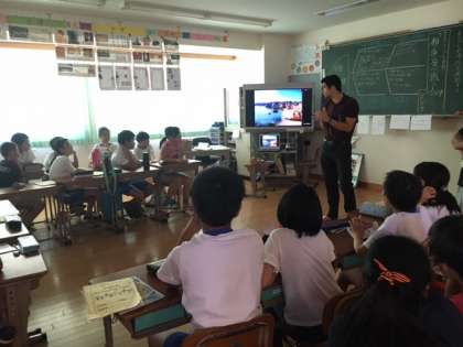 イアン先生の自己紹介の後には,「What sports do you like?」「Can you play soccer?」など,今まで習った表現を使って,イアン先生に質問する姿が見られました。
