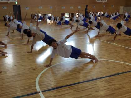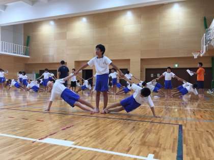 いよいよ今週から組体操の練習が本格的にスタートしました。今年は6年生として5年生のお手本を見せられるように頑張っています。今日は,音に合わせて1人技,2人技,3人技まで練習が進みました。これからも交流の友達と一緒に心を一つにして,練習をがんばりたいと思います。