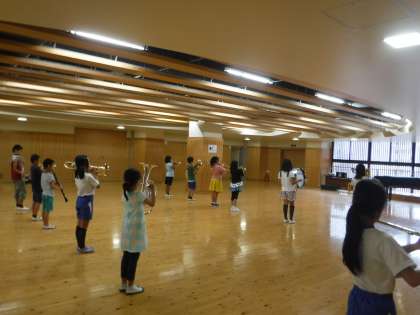 運動会まで1ヶ月。吹奏楽部では,運動会に向けて,マーチングの練習が始まりました。4〜6年生全員がマーチング初心者ですが,90分の練習の後半には楽器を持って音が出せる人もいました。上達の速さに,驚きです。「マーチングは疲れるけれど,楽しい!」と思ってくれたかな?見に来てくださった方に喜んでもらえる演奏を目指して,まだまだ練習は続きます。