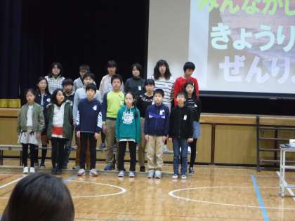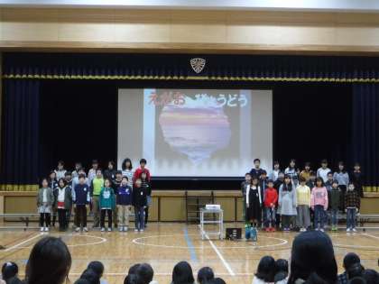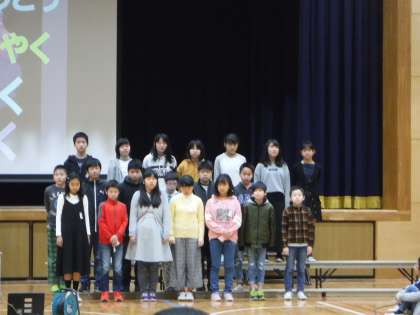 先日のからたちタイムは6年生の取組発表でした。最後の取組発表,6年生は「卒業文集」の一部分を披露しました。