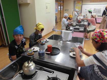 家庭科の学習では,「わが家にズームイン」という学習をしています。家庭生活についてふり返り,互いに支え合うことや,自分にできることについて考えます。9日(水)には,初めての調理実習で,ガスこんろや包丁の使い方やについて学び,お茶を入れました。子どもたちは友達と協力して準備,調理,片付けをすることができました。また,ともに活動をすることを通して,団らんを楽しむよさを感じていました。さらに友だちとの絆が深まった気がします。